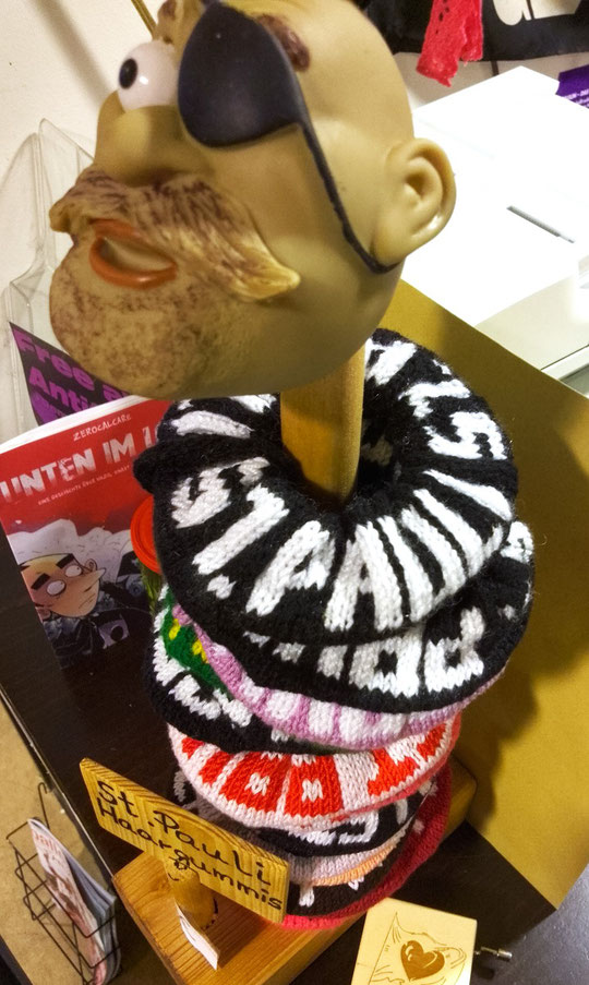 Keinen Schimmer, wer das gemacht hat, aber ich finde so etwas klasse. Trage das Haupthaar eher kurz, weshalb der praktische Nutzen für mich persönlich nicht gegeben ist, doch solche Fleißarbeiten von offensichtlich sehr geübten Händen ringen mir grundsätzlich viel Respekt ab. Fünf Euro stellen dabei auch eher eine Schutzgebühr dar, denn der gefühlte Wert ist deutlich höher. Genug palavert, guckt euch das selber mal an, der Laden hat in dieser Werkwoche normal geöffnet, also heute, morgen und übermorgen. Und am Samstag dann ab 12 Uhr mittags.