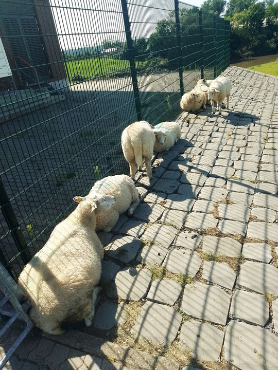 Zum Abschluss noch der traurigste Anblick heute. Mitte August ist den Schafen bereits wieder einige Wolle gewachsen. Ein Umstand, der sie ganz offensichtlich nicht verzückt.