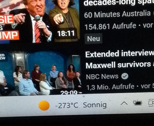 Dabei dachte ich zuerst, die Fahrt müsste ausfallen, denn die Bildschirmleiste sprach zwar von Sonnenschein, aber 273 Minusgraden: