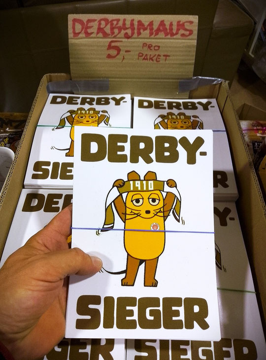 Natürlich zieht sich der frische Derbysieg wie ein roter Faden durch die meisten Sachen, egal ob Kleber, Shirts oder Buttons. Wir haben aber auch noch ein paar von den Maulwurf- und den Kurvenshirts reinbekommen...