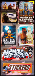 Die neuesten Sticker, die allesamt auf dem Foto zu sehen sind, plus einen kleinen Teil von denen, die noch vom letzten Heimspiel vorhanden sind.